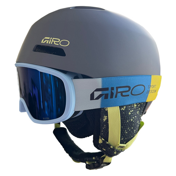 L’ensemble de sports d’hiver Crüe/ Rev Combo Jr de Giro comprend un casque à coque rigide Crüe et une paire de lunettes à lentille thermoformée cylindrique Rev avec traitement antibuée. Votre jeune athlète en devenir adorera dévaler les pentes avec ce combo amusant et performant.